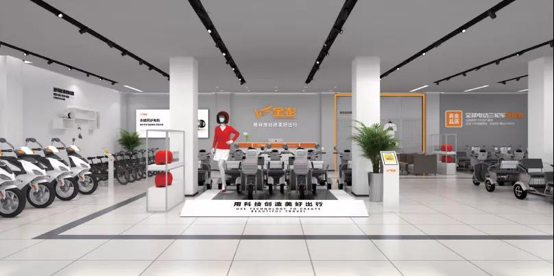 采用分级式门头展现:1级门头是醒目的Logo,能够让用户直观地认知到金彭的品牌;2级门头“用科技创造美好出行”传递金彭长久以来坚持的面向用户的企业使命;3级门头“经营品类”提供更明了的销售品类信息。同时整体采用通透的橱窗设计,可以一览店内空间。