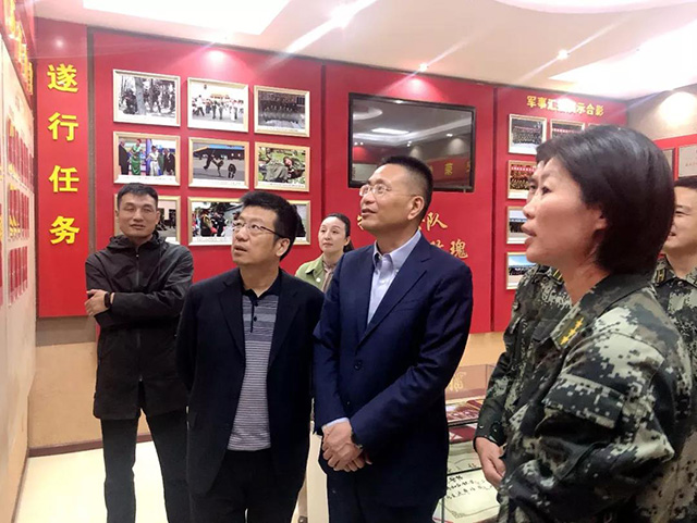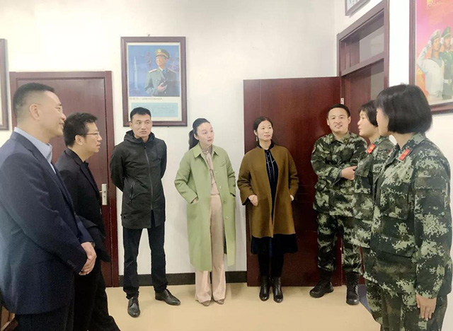 座谈结束后,爱国拥军促进会一行人等在部队首长的带领下,先后参观了大队荣誉室、器材室、官兵宿舍和训练场,在官兵宿舍,爱国拥军会领导特别慰问了江苏徐州籍的特战女兵,亲切询问了特战女兵的生活、学习和训练情况,金彭集团总裁刘志培现场向优秀的特战姑娘抛出橄榄枝,欢迎她们光荣退伍后为家乡建设发展贡献力量。