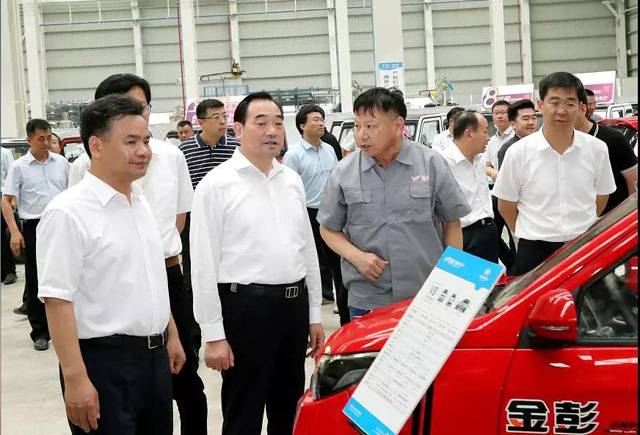 6月19日,徐州市委书记周铁根在贾汪调研时亲临金彭新建落成的金海科技园,与金彭董事长鹿守光亲切交流,并亲自试乘试驾金彭新能源汽车。在详细了解金彭的发展历程、企业实力、产品研发及未来规划后,周书记对金彭的发展给予了充分地肯定,并鼓励金彭车业坚持产业定位,集聚资源要素,做大做强新兴产业,不断提升企业竞争力和影响力。