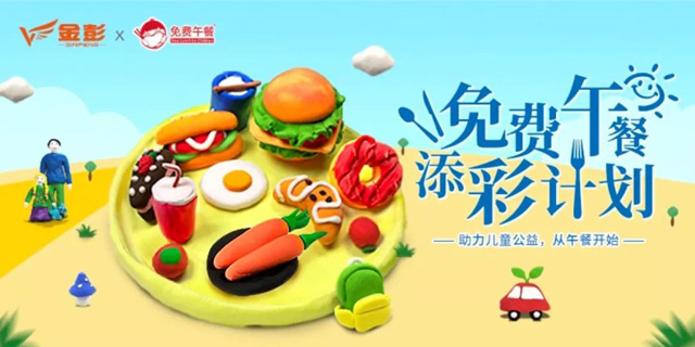 2018年8月,金彭正式倡议,在实现“饥饿脱贫”之后,还要让山区儿童享受“精神脱贫”、“眼界脱贫”和“知识脱贫”。针对偏远深山地区的落后教育资源,金彭牵头与免费午餐基金策划“添彩计划”项目,向全社会征集了6名传统文化手工艺人志愿者,从金彭总部徐州驱车出发前往四川大凉山、云南文山、安徽庐江三所山区学校,为山区儿童送去精彩的手工彩泥课程,辗转6000多公里,12个昼夜。